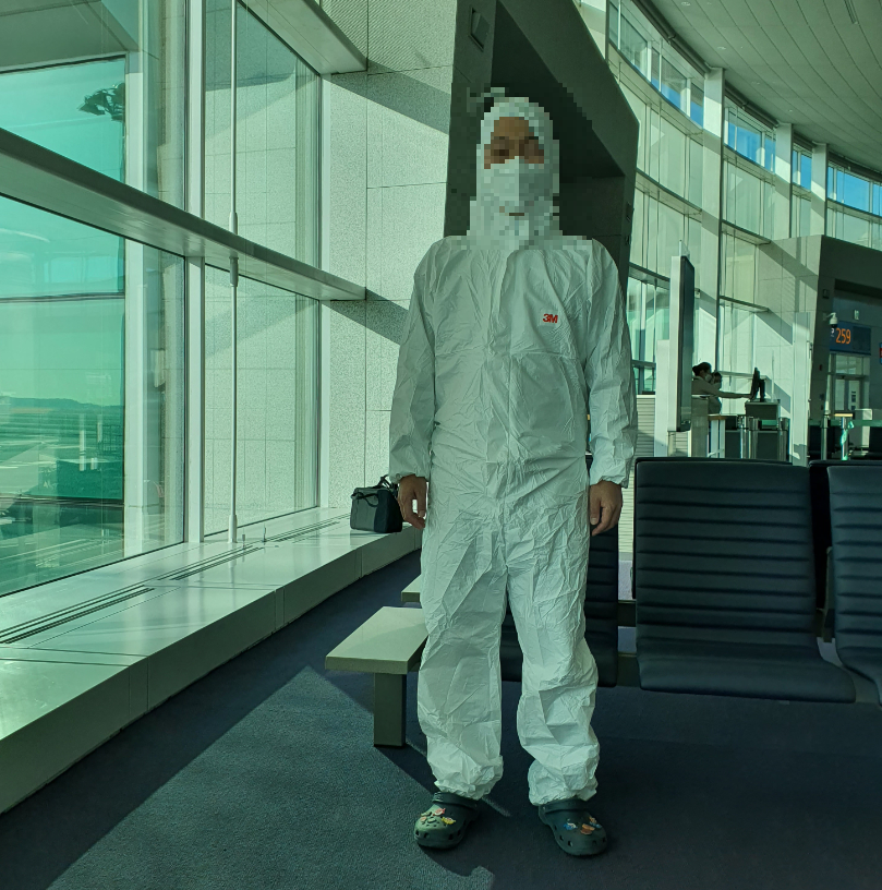 - 비행기 탑승전 의무는 아니지만 베트남 입국 심사 전에는 꼭 방역복을 입어야 합니다.