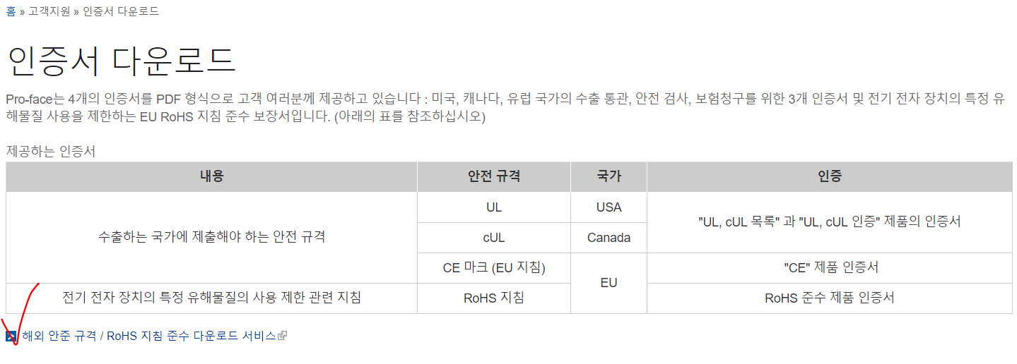 Pro-face제품 각종 인증서 다운 로드 링크입니다.
