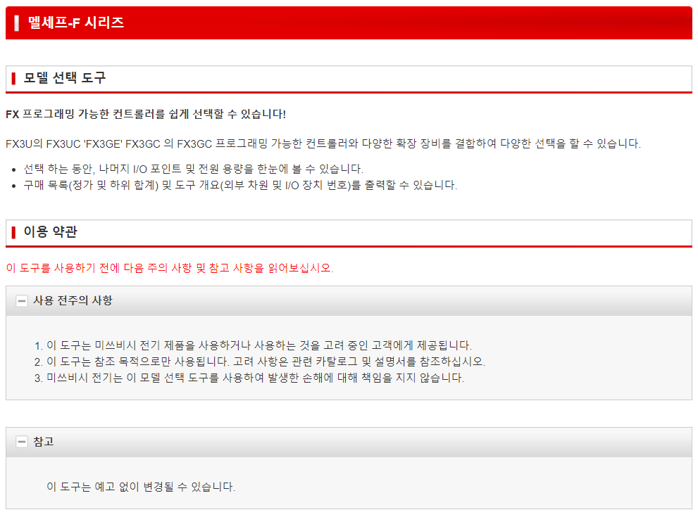 FX PLC Series Selection Tool 입니다.