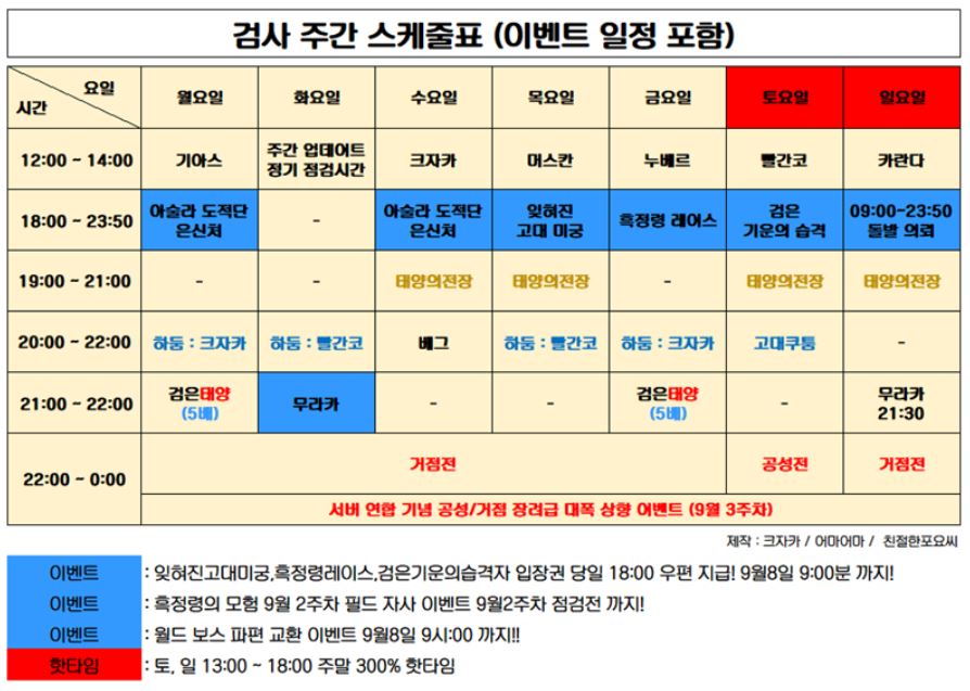 검은사막M 주간 보스 정보 및 이벤트 시간