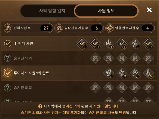 또한, 사막에서 숨겨진 의뢰 완료 시 대 사원이 열립니다.