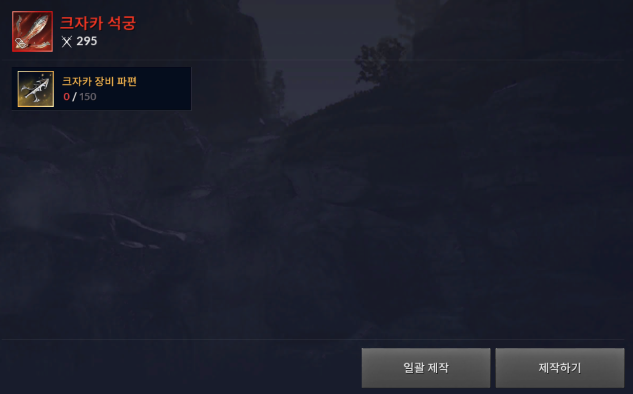 심연 등급 마력 수정 15개 -> 심연 수정 결정체로 제작
