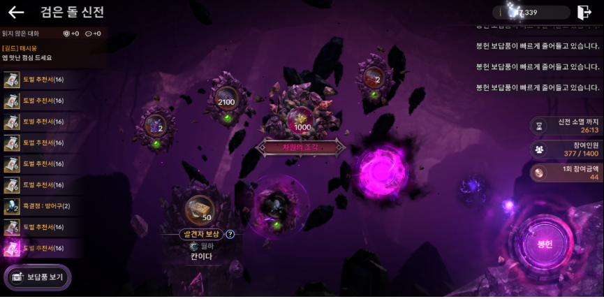 6. 검은 돌 신전 봉헌 당첨 시 1000개 획득