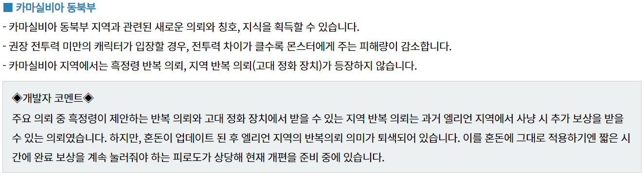신규 지역 업데이트로 인해
