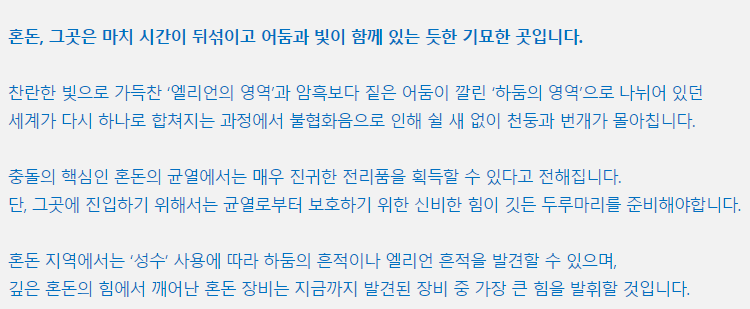 1. 특징은 기존 엘리언 지역, 하둠 지역이 아닌 또 다른 혼돈의 지역임
