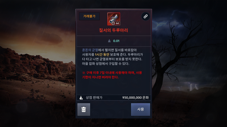 질서의 두루마리 1개 = 1시간 사냥 가능