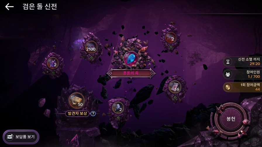 검은 돌 봉헌 1회 성공 시 5배의 배율로 획득합니다.