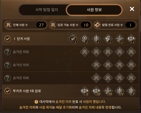 사막 입장 시 기본으로 할 수 있는 퀘스트