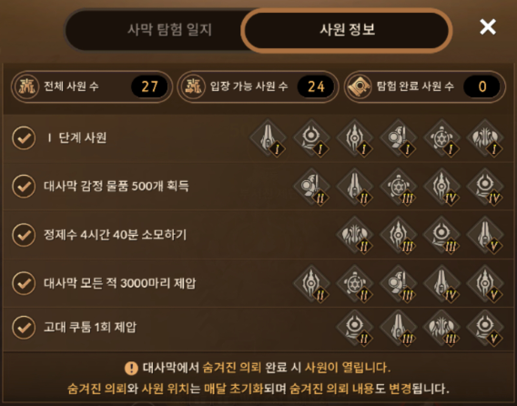 사막 입장 시 기본으로 할 수 있는 퀘스트