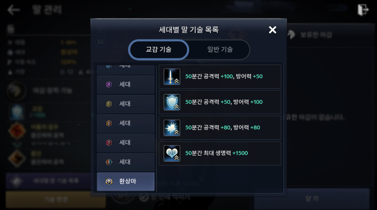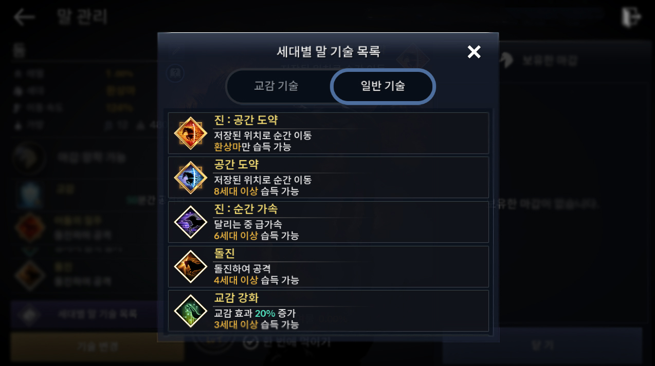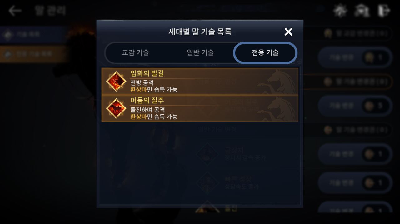 전용 기술 변경에는 말 기술 변경권 50개 필요
