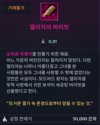 또한, 특수 보물인 엘리자의 머리빗이