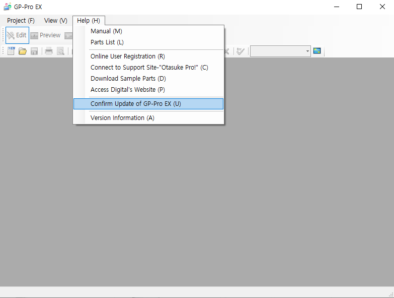 Help - Confirm Update of GP-Pro EX(U) 클릭합니다.