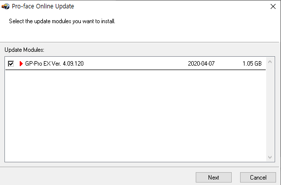 누르면 아래와 같이 Pro-face Online Update 창이 나옵니다.