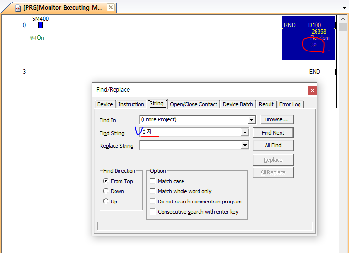 Find Device에 원하는 접점이나 코일을 입력 하시면 됩니다.