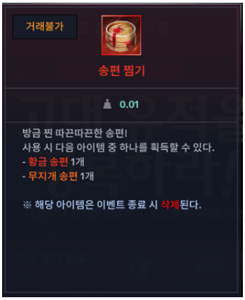 - 매일 1회 진행 완료 시 송편찜기 1개 획득