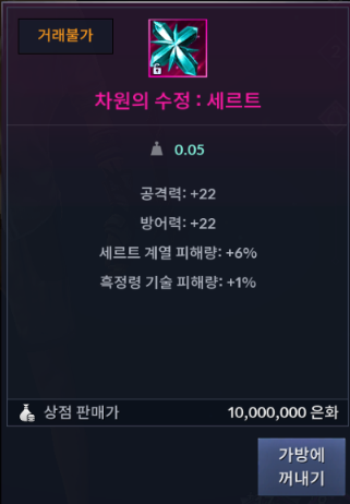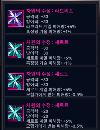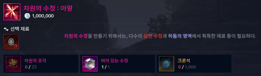 차원의 수정은 심연장비 이하에 작창 했을 경우엔