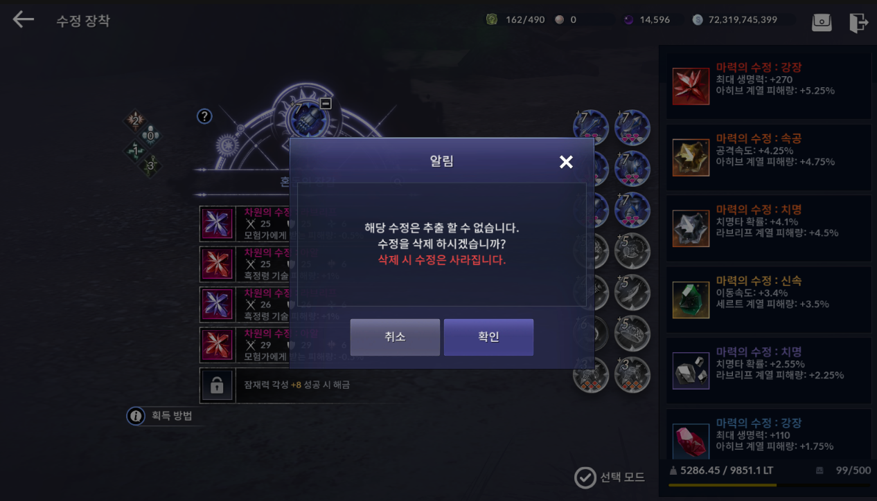 태고 등급이상에 장착 하시면 다시 추출 불가능, 삭제만 가능