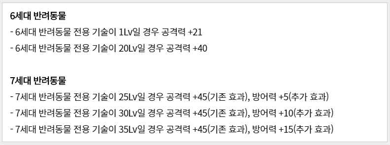 7세대는 기술 4개 + 반려동물 레벨5추가 x 2회 + 전용 기술 능력치 상승