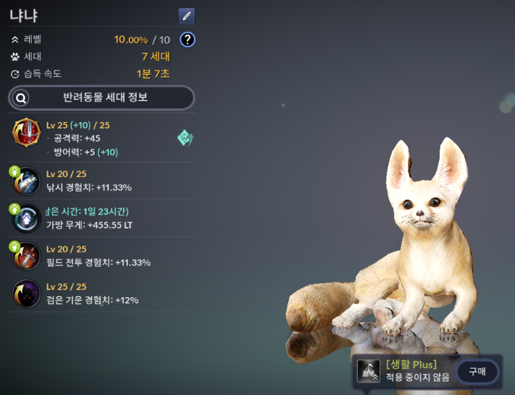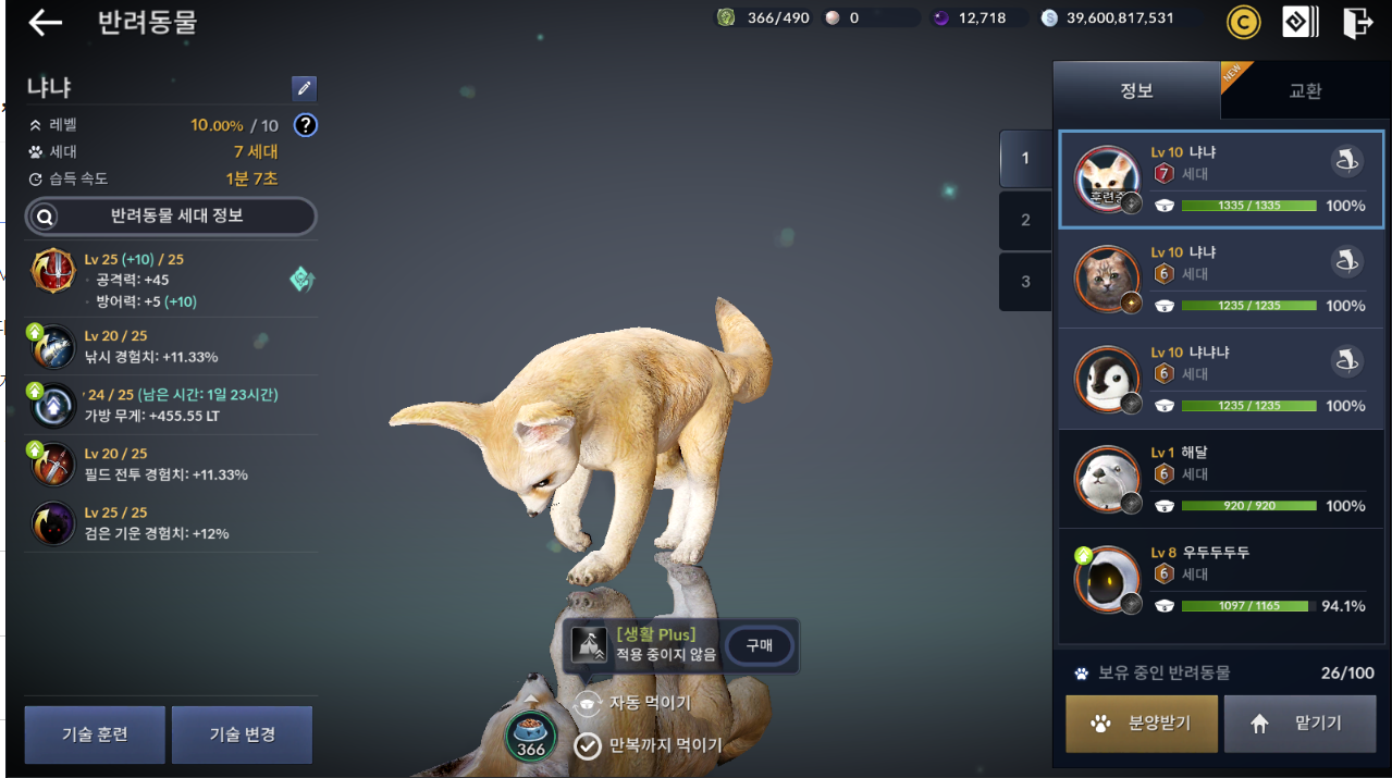 1세대 2마리를 합성 하면 확률적으로 2세대의 반려 동물을 획득 합니다.