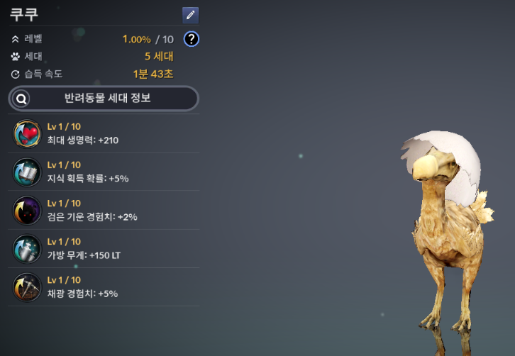 - 7세대 반려동물 업데이트 되고, 펄상점 황금 궤짝에서 가끔 등장
