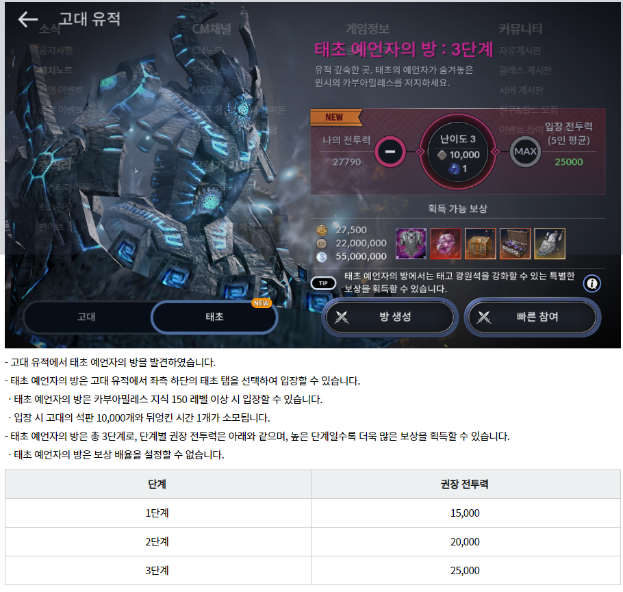 태초 : 고대유적 3단계 제압 획득 보상