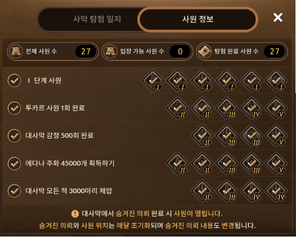 2. 대사막 감정 500회 완료