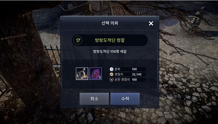 - 획득 아이템 : 무기 100LT 증가권, 중급 물약 등