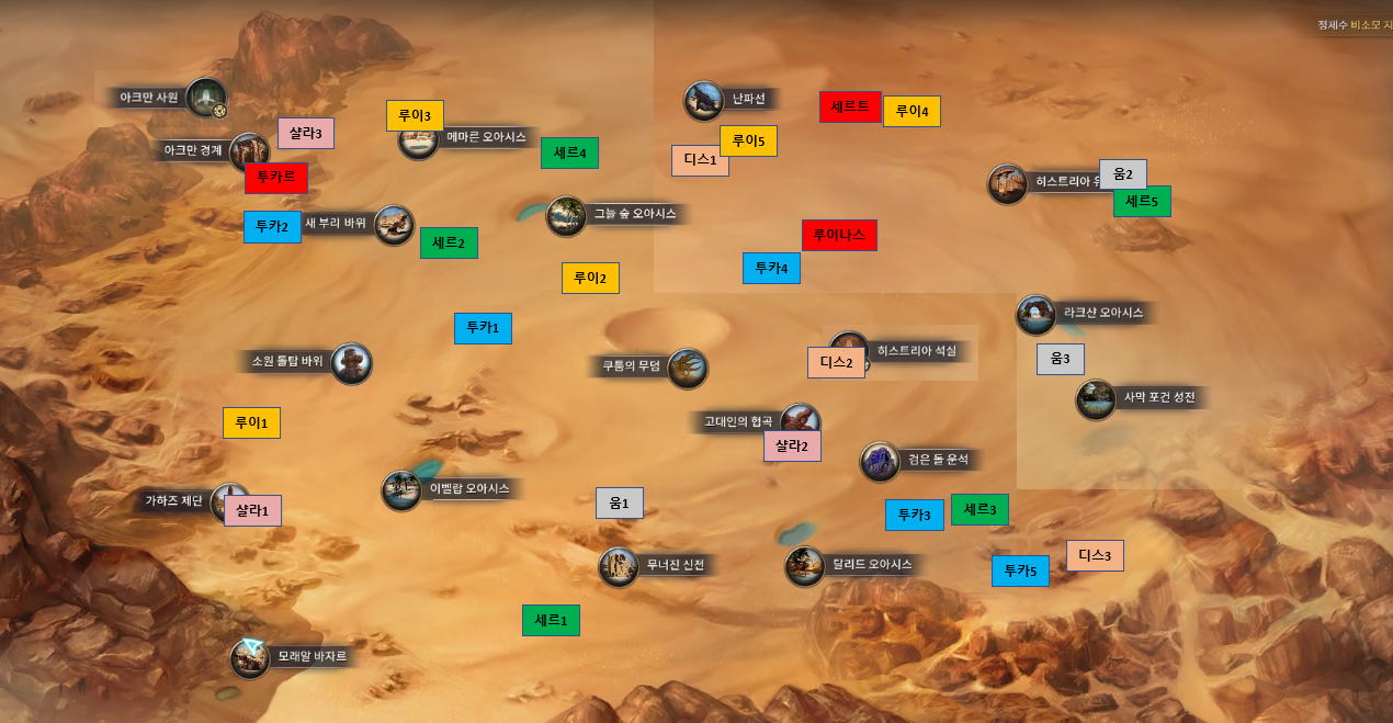 대사원은 사막 지도에서 빨간색으로 표기해 두었습니다.